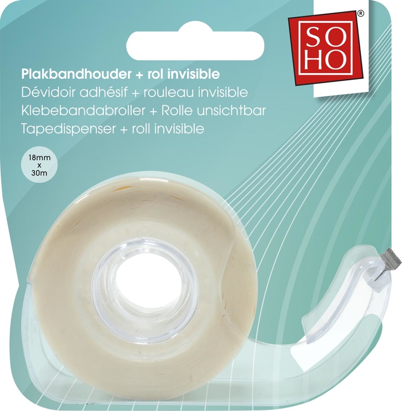 SOHO plakband, 18 mm x 30 m, onzichtbaar, met afroller