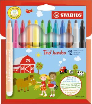STABILO Trio Jumbo viltstift, etui van 12 stuks, assorti