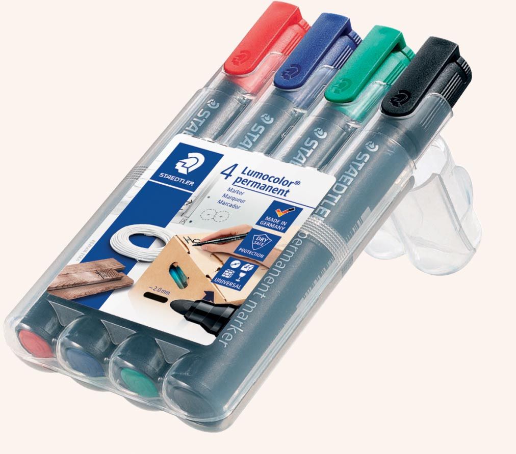 Staedtler Lumocolor 352, permanent marker, ronde punt, 2 mm, etui van 4 stuks in geassorteerde kleuren