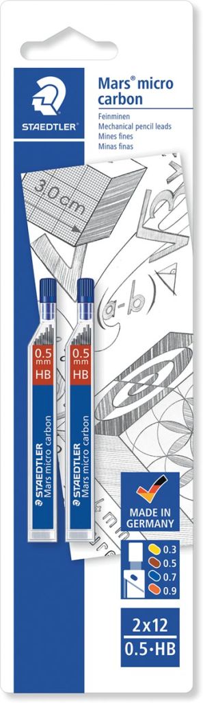 Staedtler Mars micro potloodstiften, 0,5 mm, HB, blister van 2 etuis van 12 stuks
