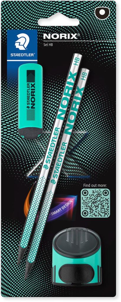 - Hardheid: HB Antislip en hoge breukbestendigheid Uit PEFC-gecertificeerd hout Blister van 2 potloden, 1 slijper en 1 gom groen