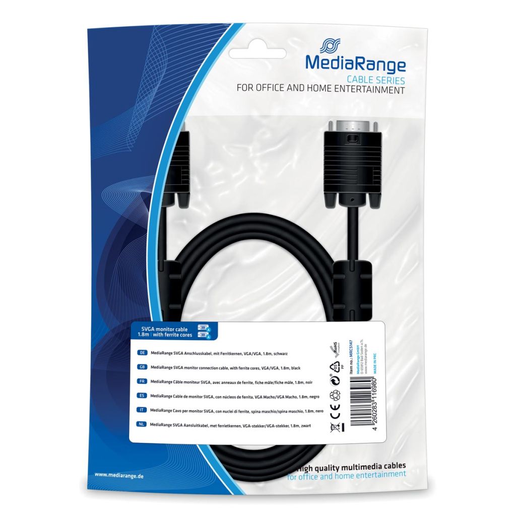 - SVGA-monitorkabel SVGA Mannelijk / SVGA Mannelijk Met ferrietringen Textielmantel Kleur: zwart kabellengte: 1,8 m