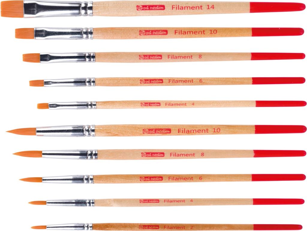 - ook geschikt voor aquarelverf, 10 penselen: 5 x rond nr 2, 4, 6, 8 en 10 en 5 x plat nr 4, 6, 8, 10 en 14