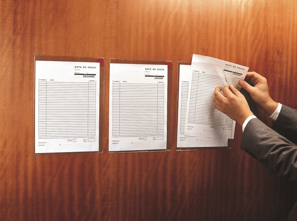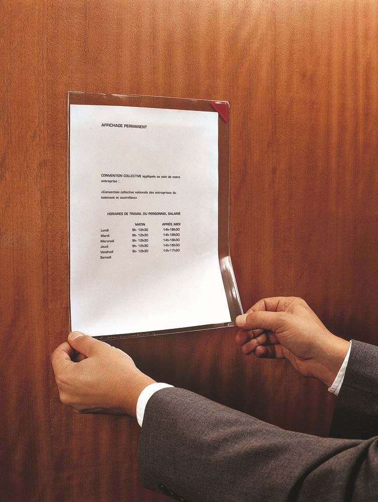 - Perfecte plaatsing van de L-map dankzij de 2 kleefstroken op de rugzijde
