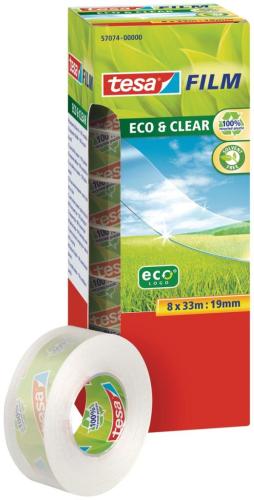- Belangrijkste eigenschappen: 100% kwaliteit + 100% gerecyclede folie én kern oplosmiddelvrije lijmlaag transparante, heldere kwaliteit vrijwel onzichtbaar op vele ondergronden sterke kleefkracht hoge scheur- en verouderingsbestendigheid stil en gelijkmatig afrollen past in elke verkrijgbare tesafilm® dispenser Ecologische verpakking: 80% gerecycleerd karton ft 19 mm x 33 m, toren van 8 rolletjes