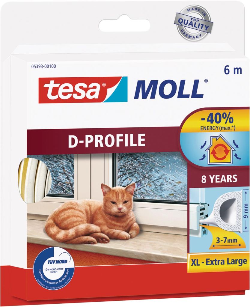 Tesa Moll Classic tochtstrip D-profiel, 6 m, wit