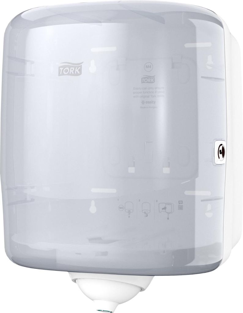 - Robuust ontwerp bestendig tegen de zwaarste omstandigheden Afgesloten dispenser die rollen beschermt voor een betere hygiëne Easy to use Systeem M4 Ft 34,7 x 24,7 x 26,3 cm Kleur: wit