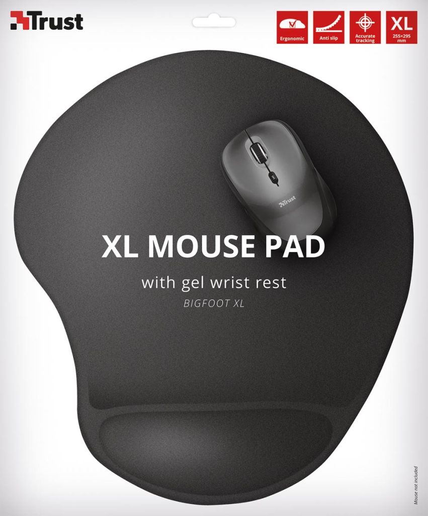 Trust BigFoot XL muismat met gel polssteun, zwart