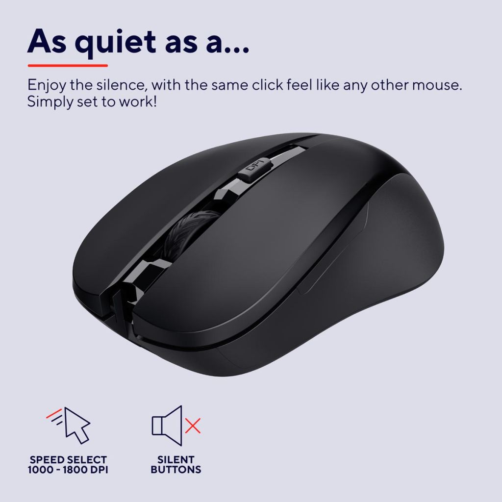 - Met opbergbare micro-USB-ontvanger Voor zowel rechts- als linkshandigen Met 4 knoppen Aanpasbare gevoeligheid (1000 - 1800 dpi) Draadloos bereik van 10 m Met geavanceerde stille knoppen Werkt op 2 AAA-batterijen (meegeleverd) Kleur: zwart