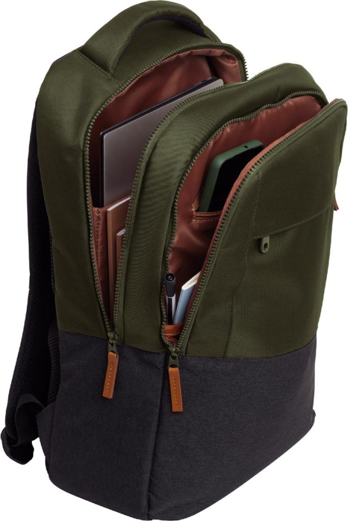 - Uit polyester en gerecycleerd PET Voor laptops tot 16 inch Groot gevoerd binnenvak van 23 L Schok - en weerbestendig Veel opbergvakken Ft 46 x 30 x 16,5 cm groen
