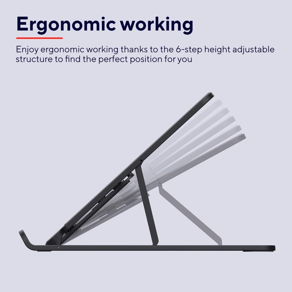- Voor laptops en tablets tot 16 inch Inklapbaar Met 6-staps hoogteverstelling Kleur: grijs/zwart