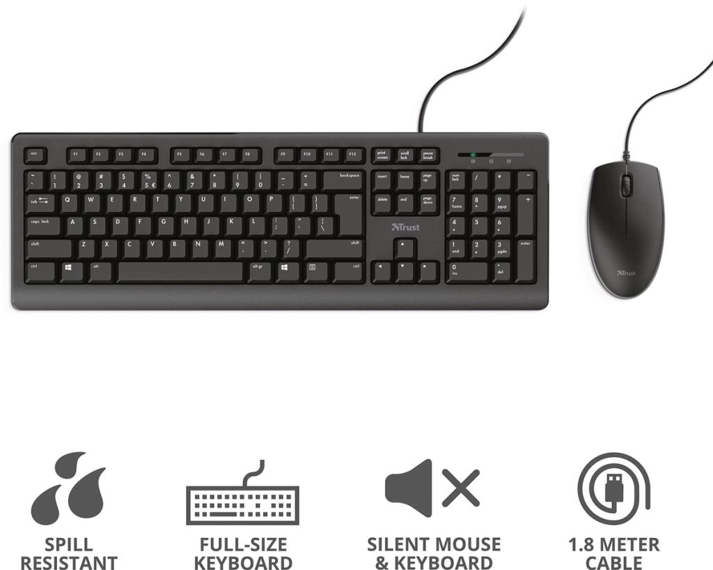 - Full-size toetsenbord met standaardindeling om comfortabel te typen Morsbestendig toetsenbord Muis voor rechts- en linkshandigen Kabel van 1,8 m Plug & Play azerty-toetsenbord