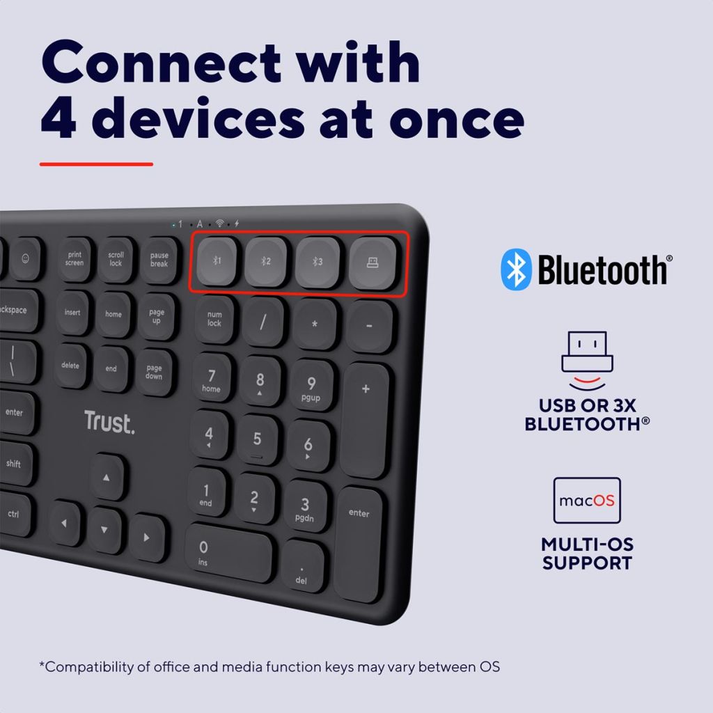 Trust Vaiya draadloos toetsenbord, multi-device, qwerty