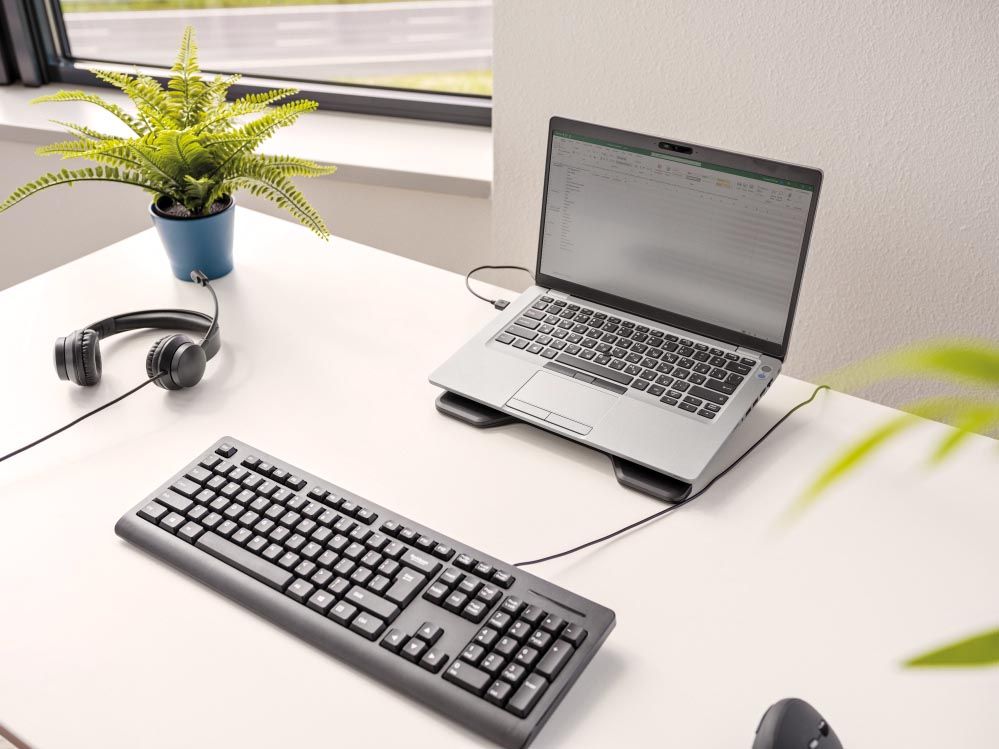 - hoogte: 3,5 cm Verbeterde koelefficiëntie van uw notebook Beschermt meubels en benen tegen hitte Voor laptops tot 16 inch Ventilatoren met USB-voeding, geen stopcontact nodig Opbergplaats voor USB-kabel en -plug Kleur: zwart