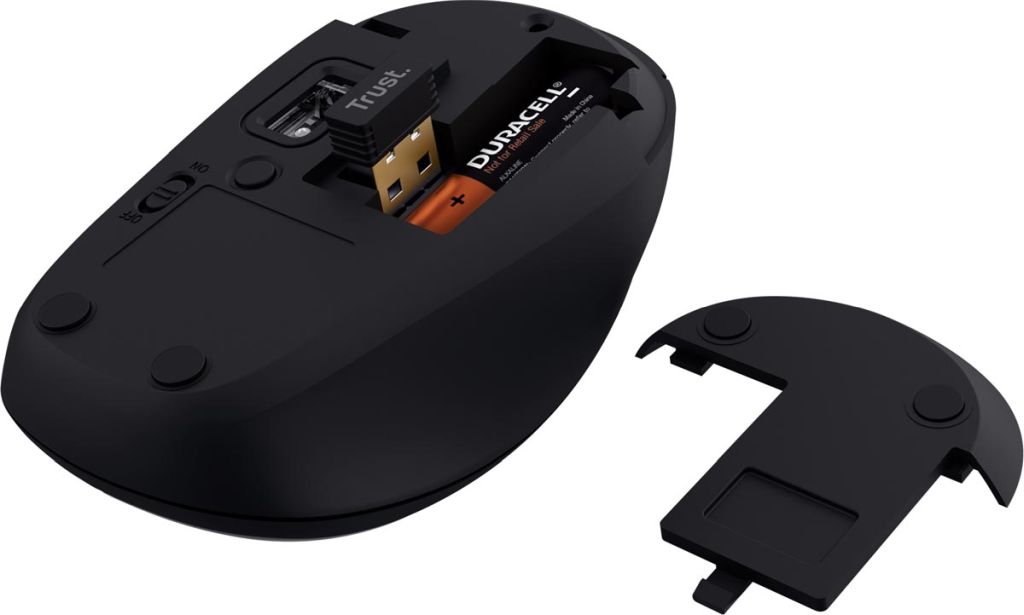 - Instelbare opties voor draadloze connectiviteit (2,4 GHz (met micro-USB-ontvanger) en Bluetooth) Met 3 knoppen Aanpasbare gevoeligheid (800 1.200 1.600 dpi) Draadloos bereik van 8 m Werkt op 1 AA-batterij (meegeleverd) Gerecycleerd materiaal: 75% zwart