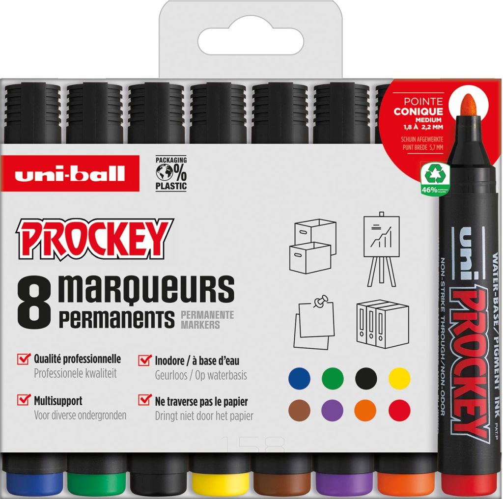 Uni-ball permanent marker Prockey PM-122, ronde punt, medium, etui van 8 stuks