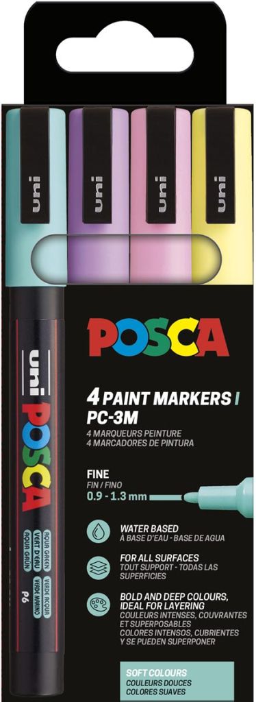 Uni POSCA paintmarker PC-3M, 1,5 mm, etui van 4 stuks in geassorteerde zachte kleuren