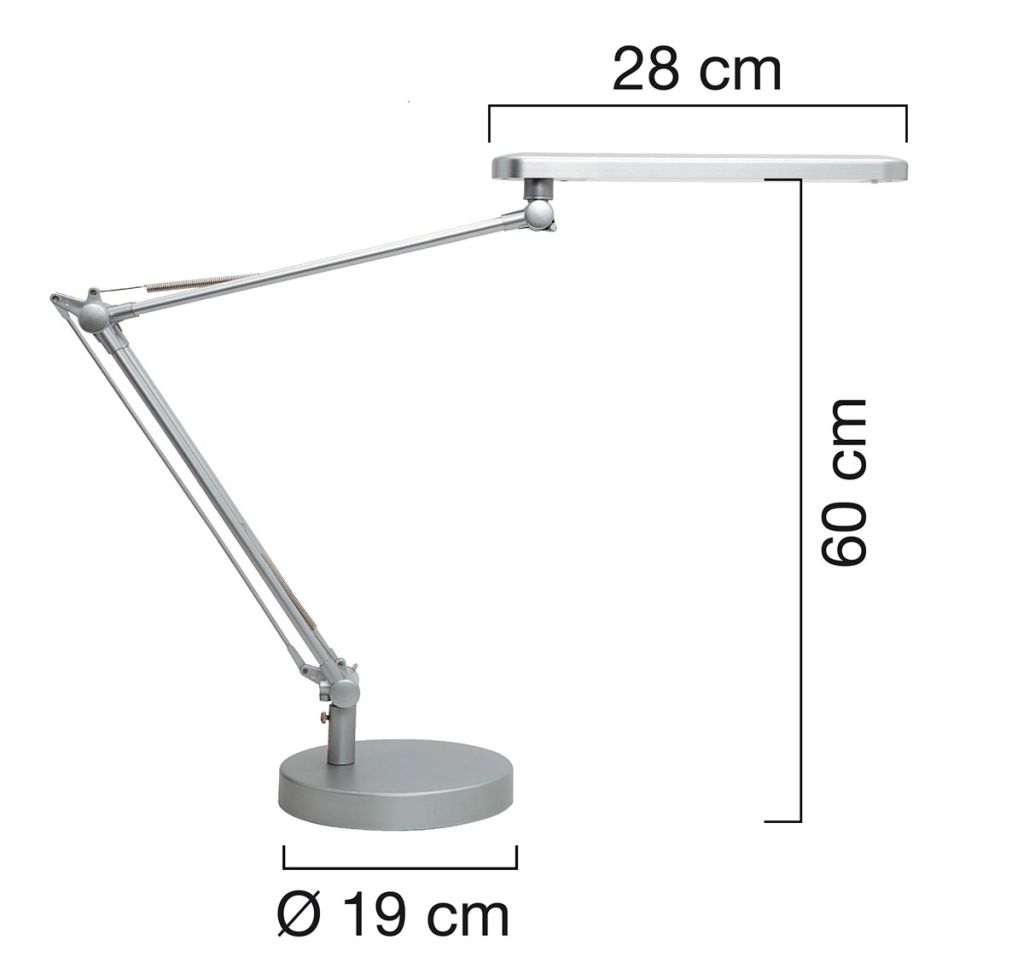 - Zeer efficiënte verlichting: 110 lm/w Verbruikt 50% minder energie dan een fluorescentielamp Krachtig, warm licht met gelijkmatige verspreiding dankzij diffusor Dubbele arm met compensatieveren voor soepele en grote bewegingen Draaibare lampenkap voorflexibele verlichting Inclusief voet en klem voor veelzijdige bevestiging 7 kWh/1000h Grijs