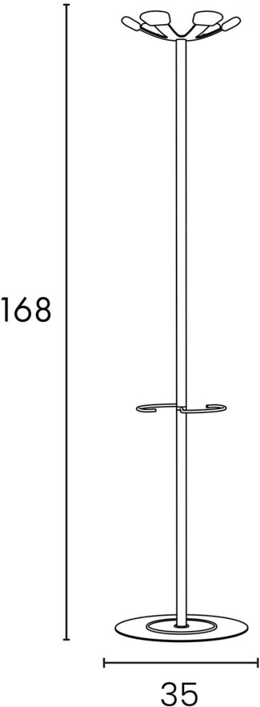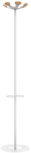 - 6 beukenhouten haken, die elk een gewicht van 5 kg kunnen dragen Stalen paraplubak die ruimte biedt voor maximaal 6 paraplu's Uitgerust met een lekbak Maximale belasting: 30 kg Ft 35 x 168 cm wit