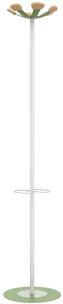 - 6 beukenhouten haken, die elk een gewicht van 5 kg kunnen dragen Stalen paraplubak die ruimte biedt voor maximaal 6 paraplu's Uitgerust met een lekbak Maximale belasting: 30 kg Ft 35 x 168 cm wit/groen