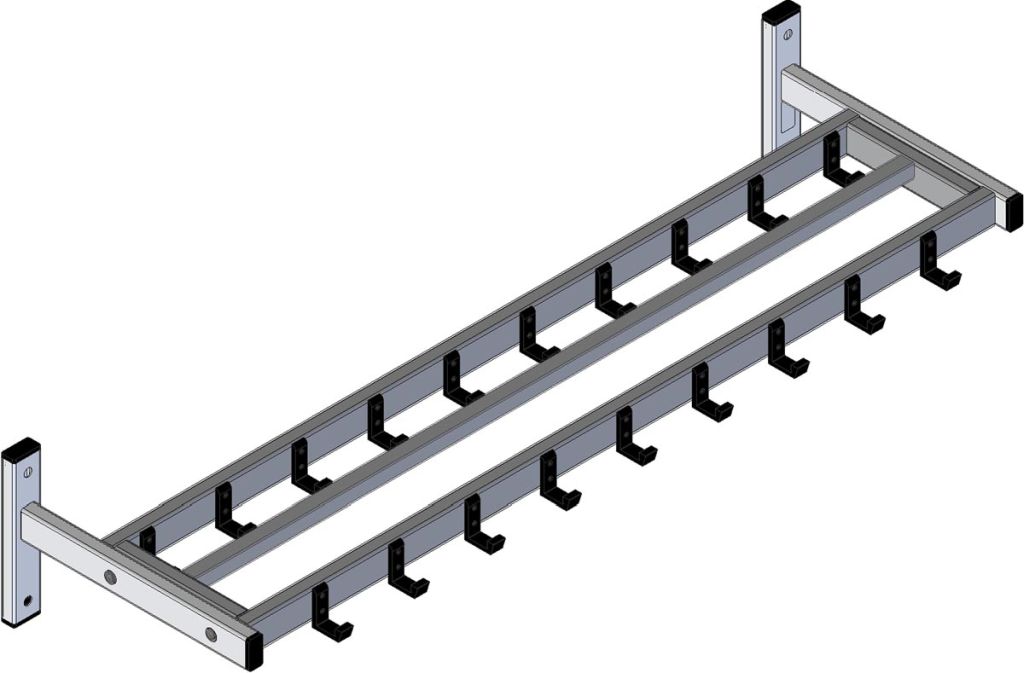 - Wandgarderobe met een dubbele rij nylon haken