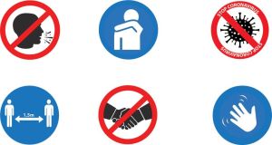 - Sticker met 6 symbolen voor veiligheid en hygiënevoorschriften