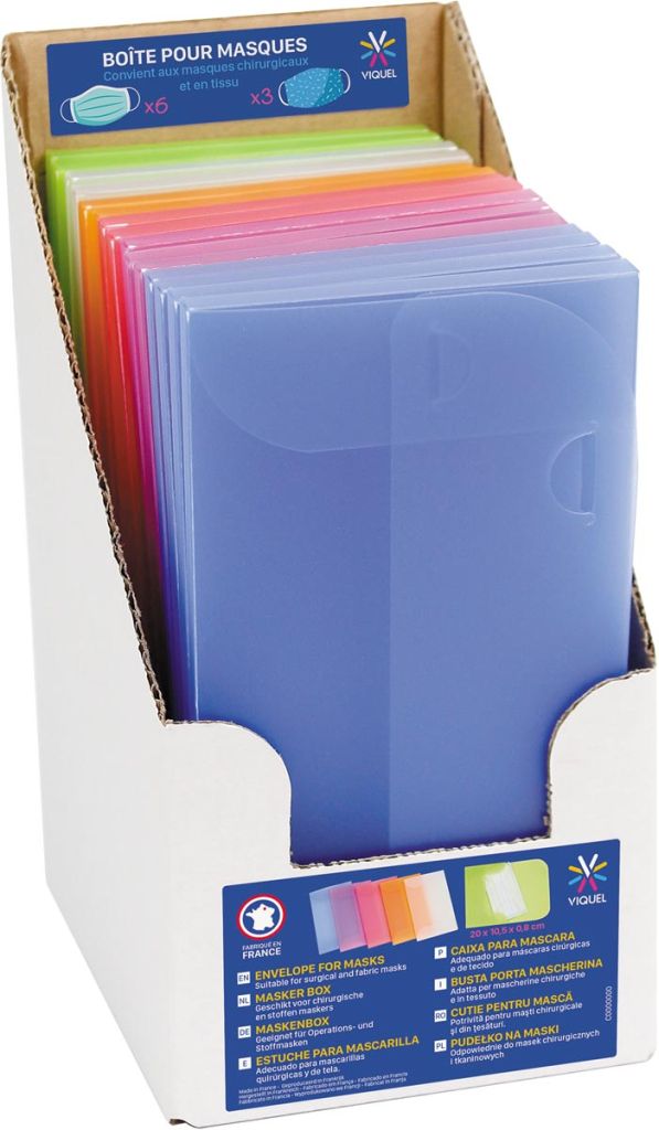 Viquel enveloppen voor beschermende mondmaskers, ft 20 x 10,5 x 0,8 cm, display met 15 stuks