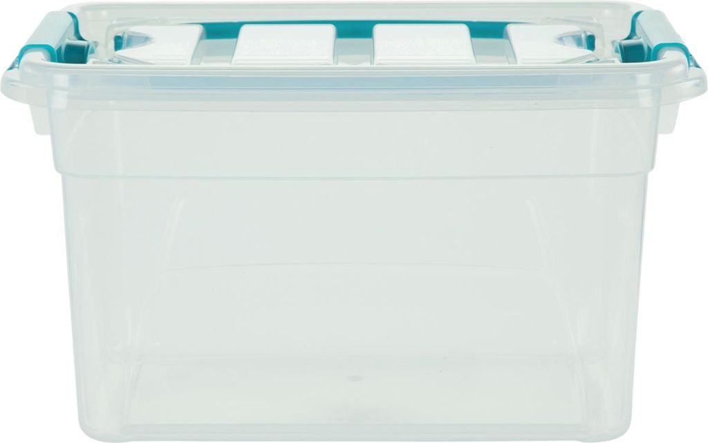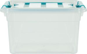 - Deksel afsluitbaar met 2 blauwe clips, waardoor de inhoud beschermd wordt tegen stof en vuil