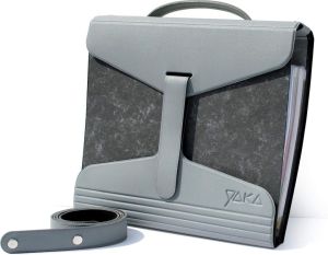 - Past op alle ordners en documenthouders (A4-formaat van 40 tot 80 mm) Bestaat uit een hoofddeel Heeft een riem van 120 cm die in drie lengtes kan worden aangepast: 96 cm, 104 cm of 112 cm Gemakkelijk te dragen met het handvat of de schouderriem Gemaaktvan biocompatibel PVC grijs