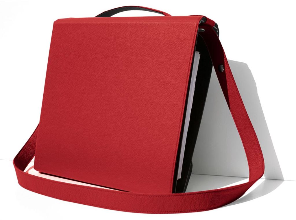 - Past op alle ordners en documenthouders (A4-formaat van 40 tot 80 mm) Bestaat uit een hoofddeel Heeft een riem van 120 cm die in drie lengtes kan worden aangepast: 96 cm, 104 cm of 112 cm Gemakkelijk te dragen met het handvat of de schouderriem Gemaaktvan generfd leer 100 % handgemaakt rood leder