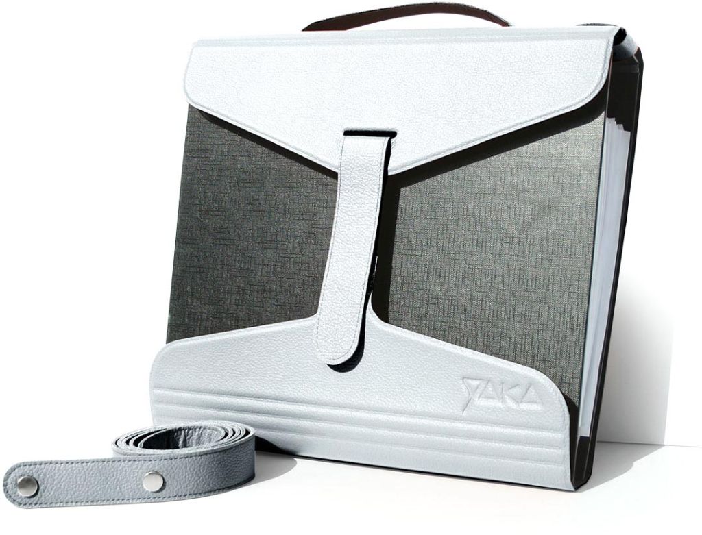 - Past op alle ordners en documenthouders (A4-formaat van 40 tot 80 mm) Bestaat uit een hoofddeel Heeft een riem van 120 cm die in drie lengtes kan worden aangepast: 96 cm, 104 cm of 112 cm Gemakkelijk te dragen met het handvat of de schouderriem Gemaaktvan generfd leer 100 % handgemaakt wit leder